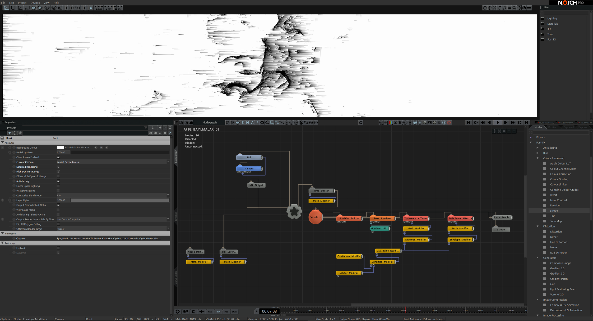 NDI camera footage was processed with real-time effects using Notch software throughout the play. In addition, interactive images were created simultaneously with the songs in two scenes, and the visuals of the other scenes were prepared by Notch in the post-production process.
